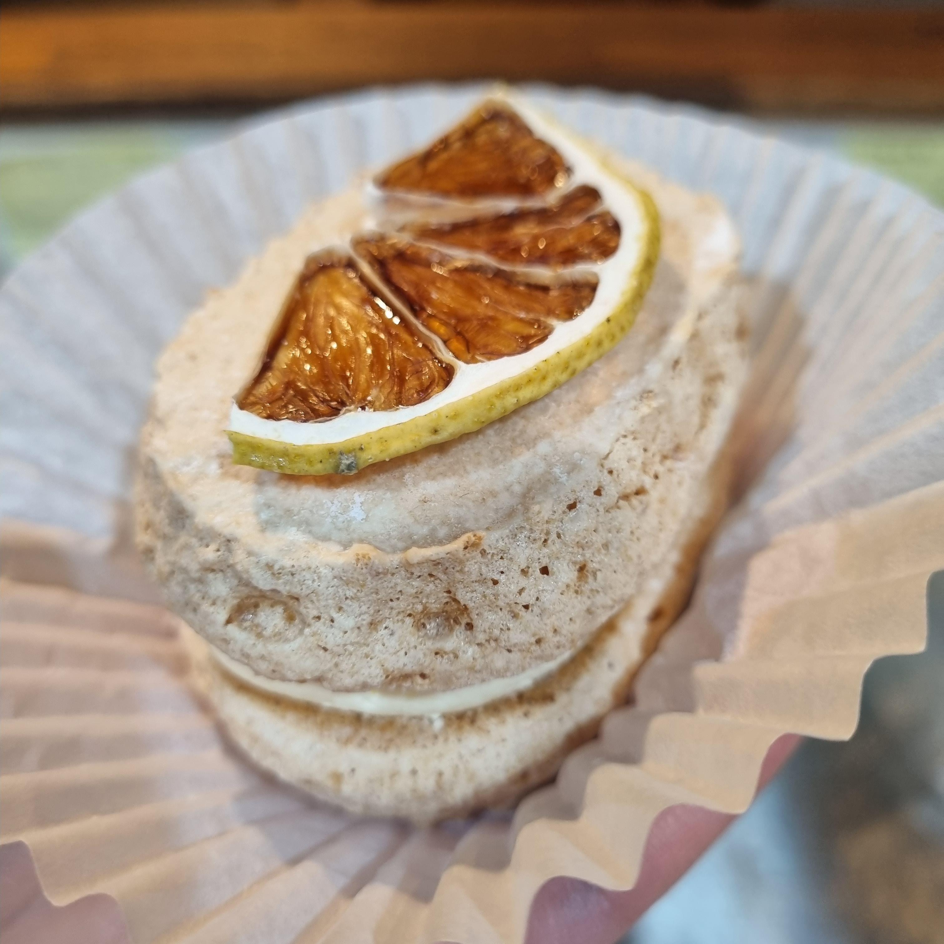 말린 레몬은 먹지 않았지만 안에 들어간 바닐라 필링크림이 꾸덕하면서도 폭신한 다쿠아즈 스펀지와 어울려서